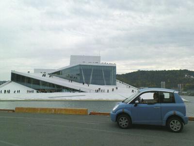 Nach einer Fährfahrt über Nacht kommen wir in Oslo an und drehen dort ein hochmodernes effizientes City-Car. Ein geniales Fahrzeug, ausstoßfrei und fast geräuschlos. Die Batterien werden von der Herstellerfirma, die ab November am Band produzieren wird, verliehen und müssen nicht gekauft werden.